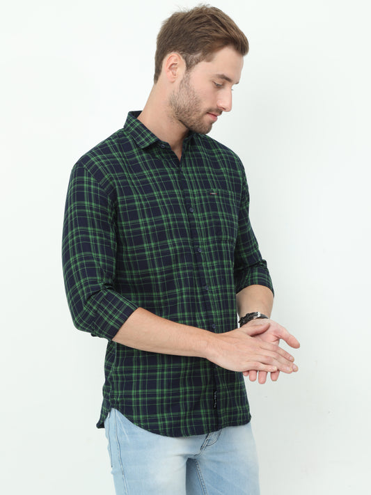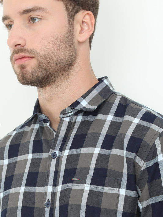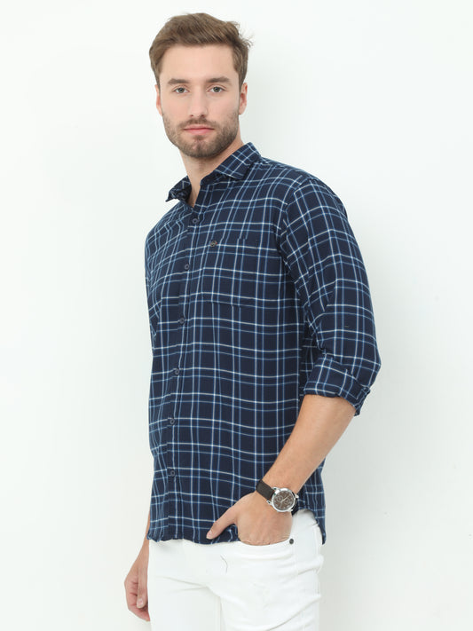 Onfire Checks Navy Blue Cargo Shirt - A2235A