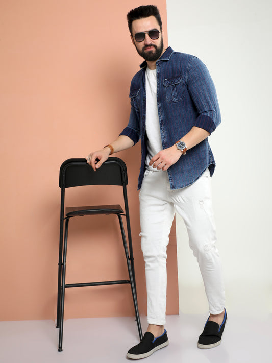 Onfire Lugano Denim Checks Cargo Shirt 2254 B