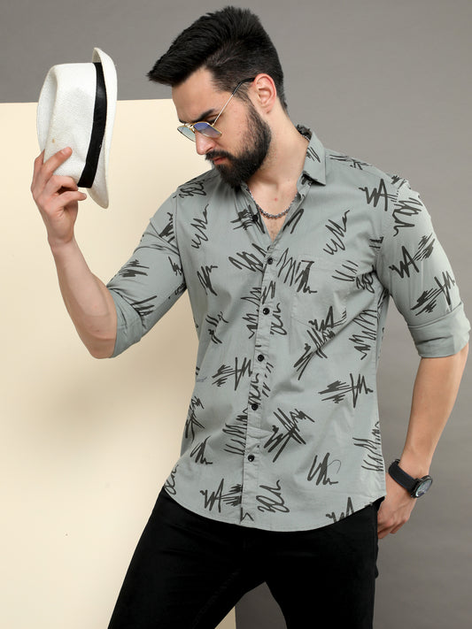 Onfire Digital Print Shirt - Dark Brown 2237D