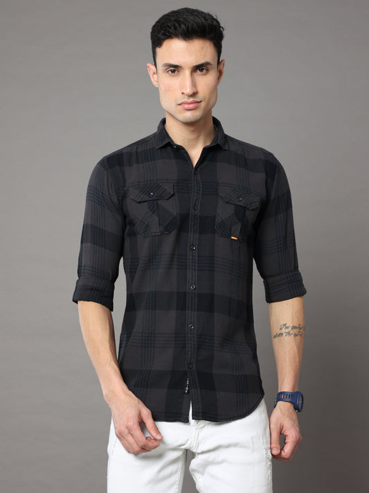 Onfire Tomford Checks Dark Grey Cargo Shirt - A2269A