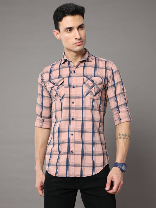 Onfire Tomford Checks Peach Cargo Shirt - 2250A