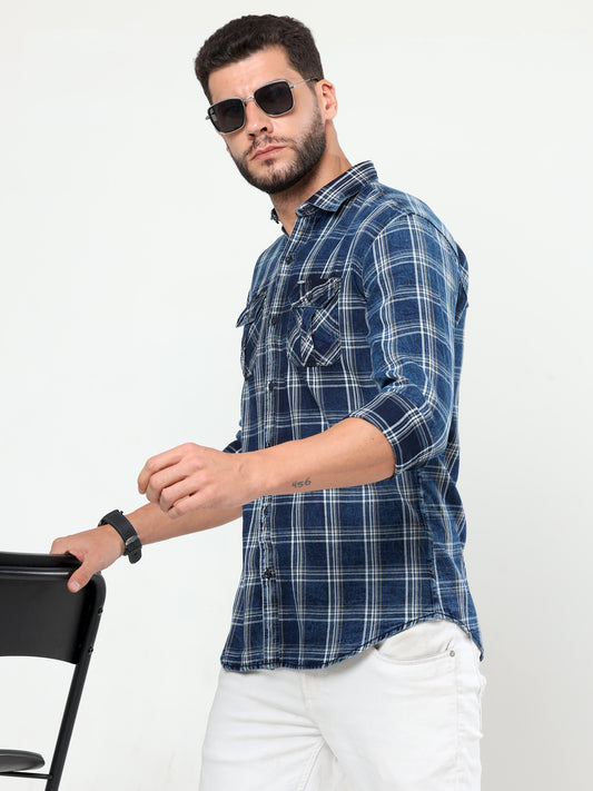 Onfire Denim Indigo Checks Cargo Shirt 2255 Blue/Grey
