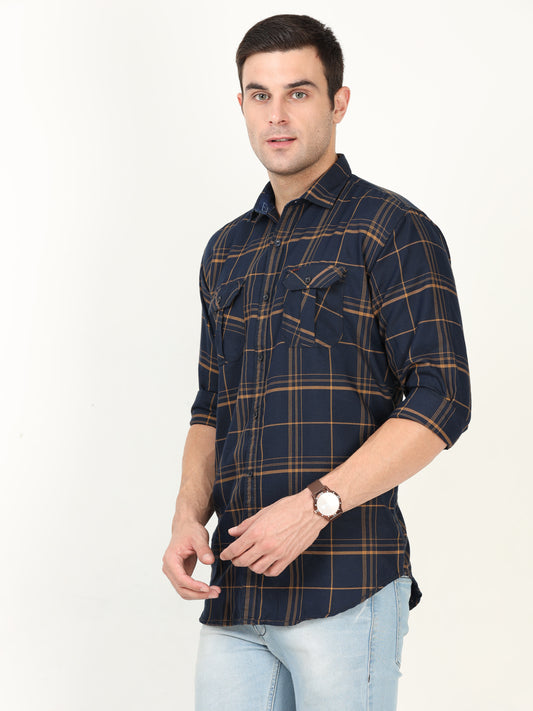 Onfire Checks Navy Blue Cargo Shirt - A2235A