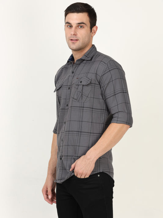 Onfire Checks Grey Cargo Shirt - A2235A
