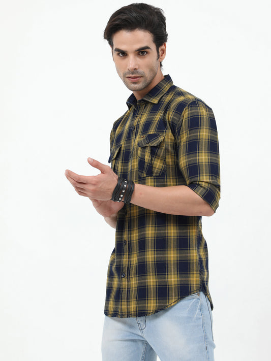 Onfire Checks Yellow/Blue Cargo Shirt - 2234