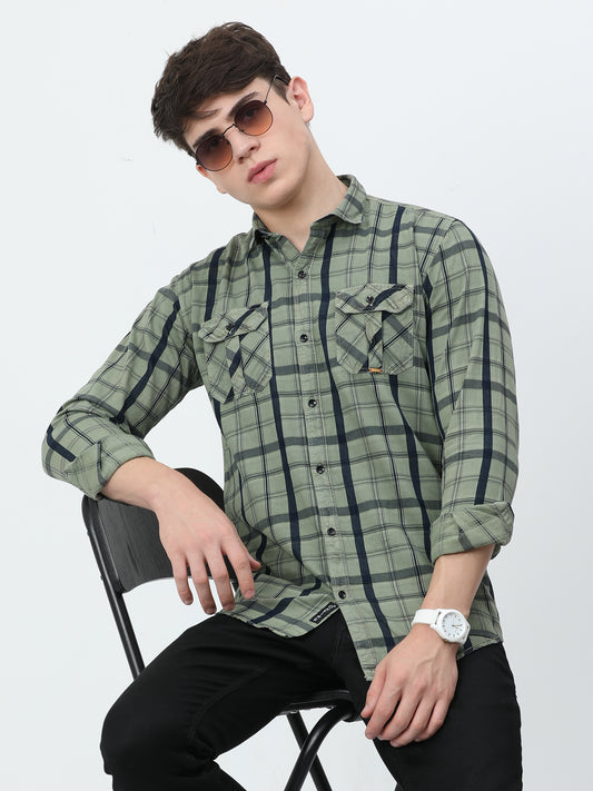 Onfire Leon Checks Green Shirt - A2218A