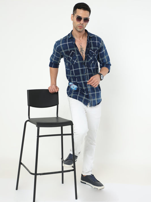 Onfire Lugano Denim Checks Cargo Shirt 2254 B