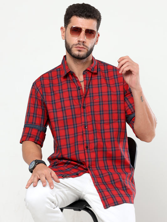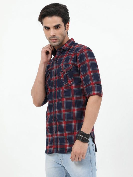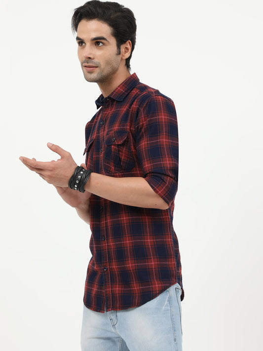 Onfire Checks Red/Blue Cargo Shirt - 2233