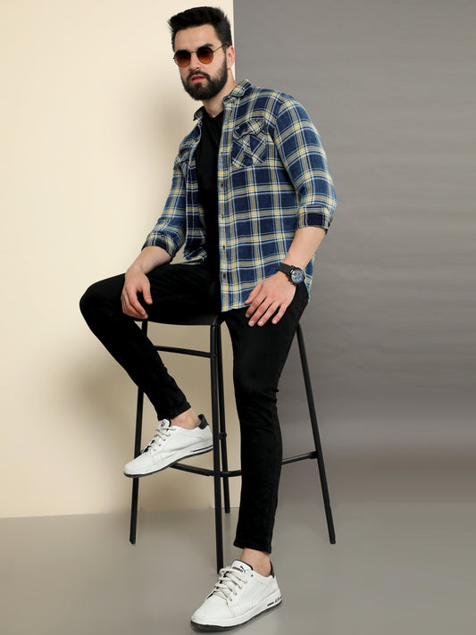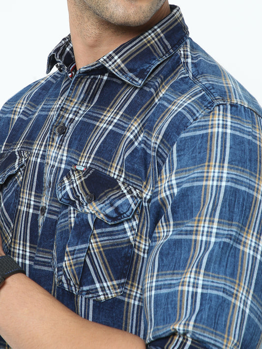 Onfire Denim Indigo Checks Cargo Shirt 2258 Blue/Yellow