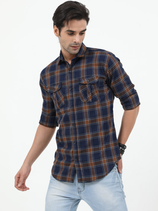 Onfire Checks Cargo Shirt - Brown 2233