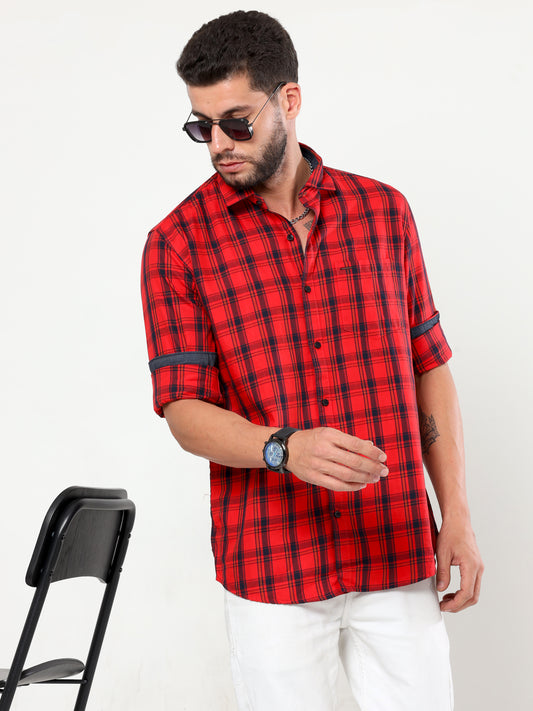 Onfire Denim Indigo Checks Cargo Shirt 2258 Blue/Red