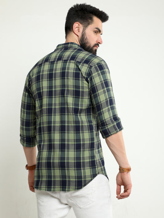 Onfire twill lycra checks shirt 2232 green