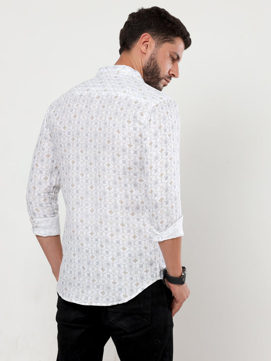 Onfire Pure linen Diamond printed shirt 2227/2 white