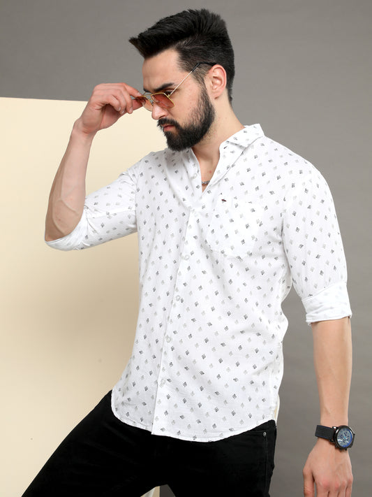 Onfire linen printed shirt 2229 white