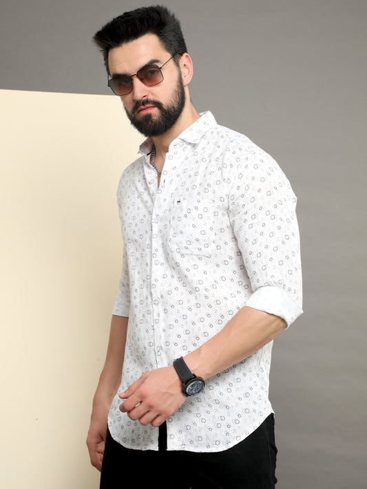 Onfire Raw Pure Linen Printed Shirt 2227/3 White