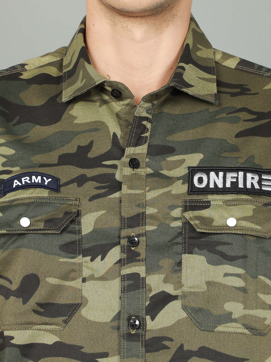 Onfire Sulphur Cargo Mehandi Green Shirt - 2259A